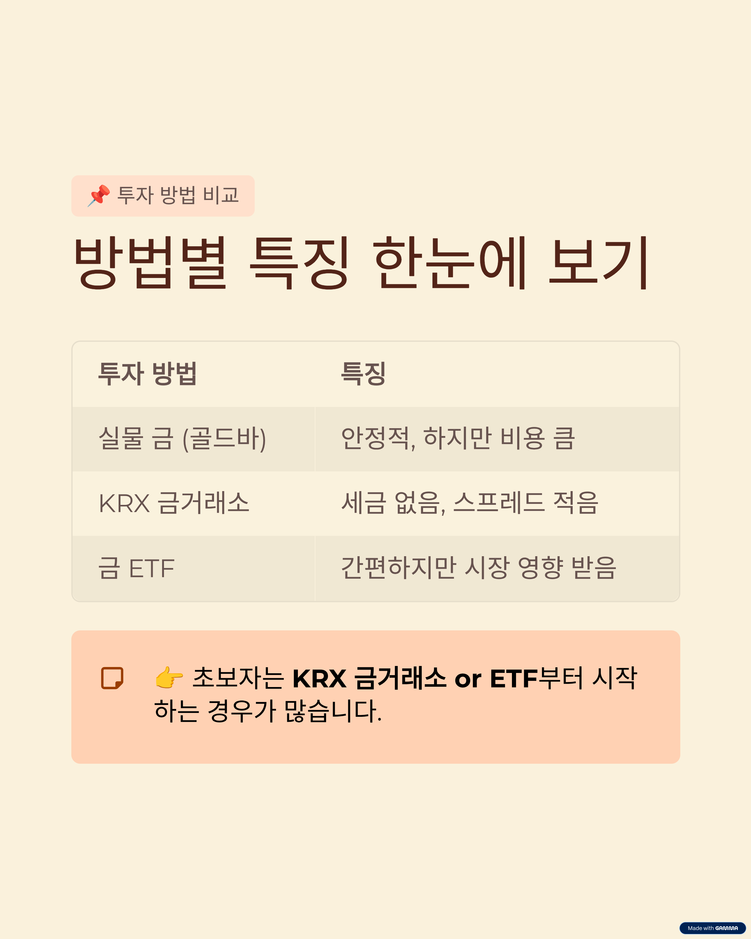 📌 6. 금 투자 방법 비교